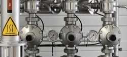 In this process, a tank full of osmosed water heated by several heat exchangers through which industrial steam passes. The heated water generates the clean steam.