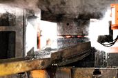 Hot forging press is compressing billets and ingots of iron or steel at very high temperatures