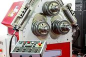 A roll bending machine bends cylindrical metal profiles into circular arcs, usually following a single angle/bending radius.
